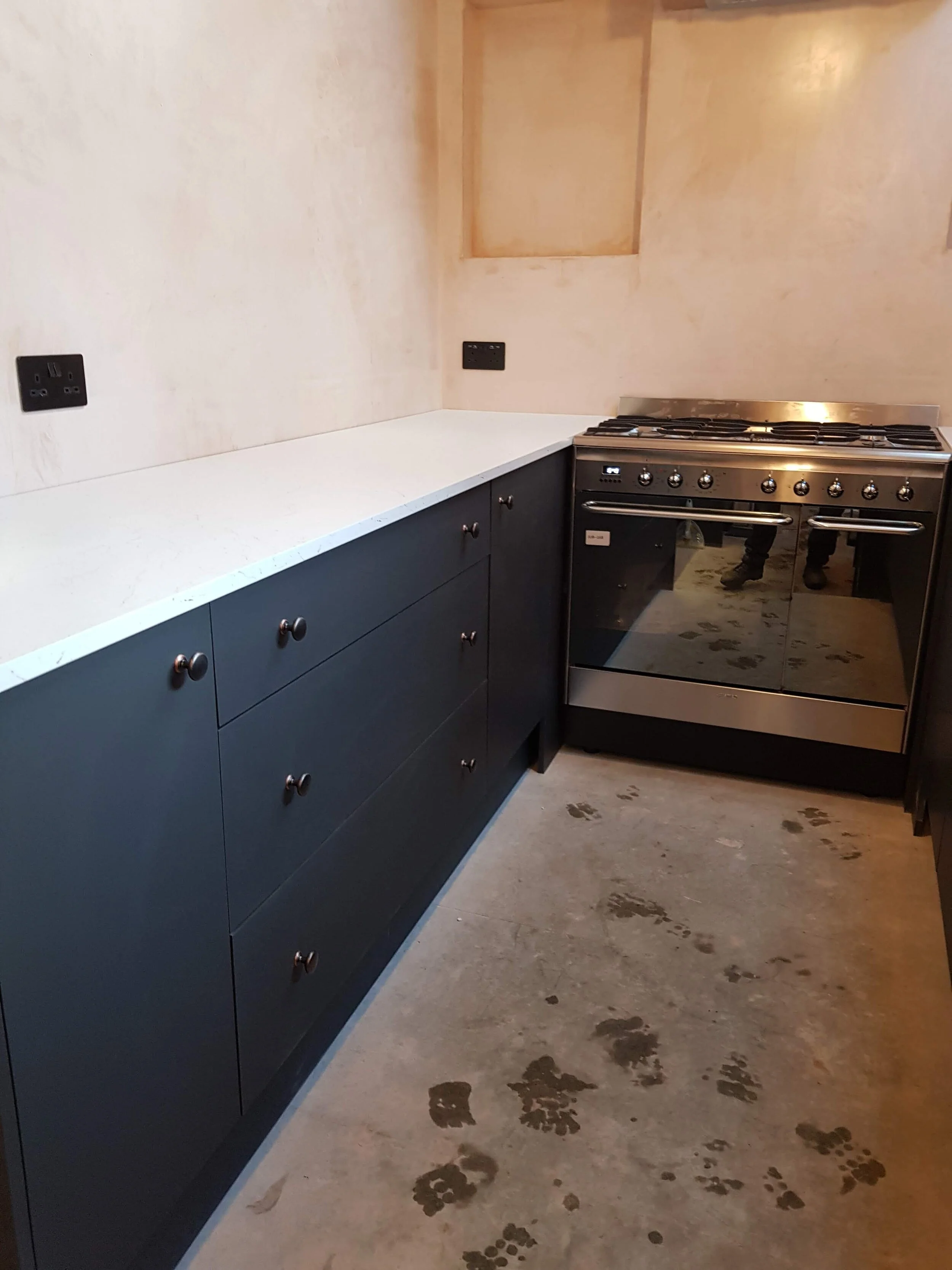 The outbuilding was insulated and fitted out to adhere to building regulations. Resulting in a modern, galley kitchen with new side windows and Velux windows to bring natural light into the space.